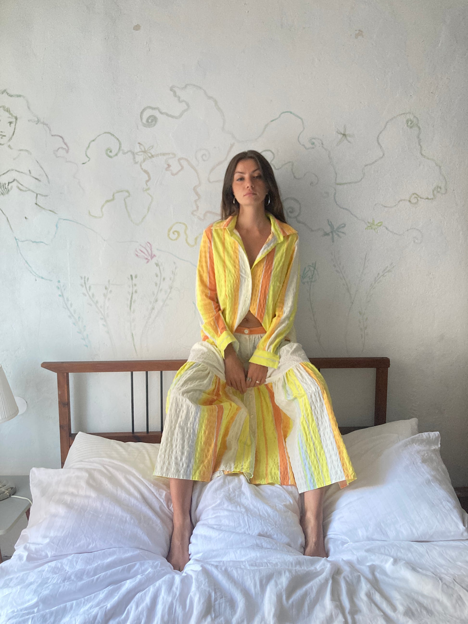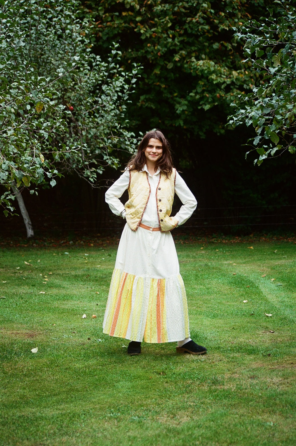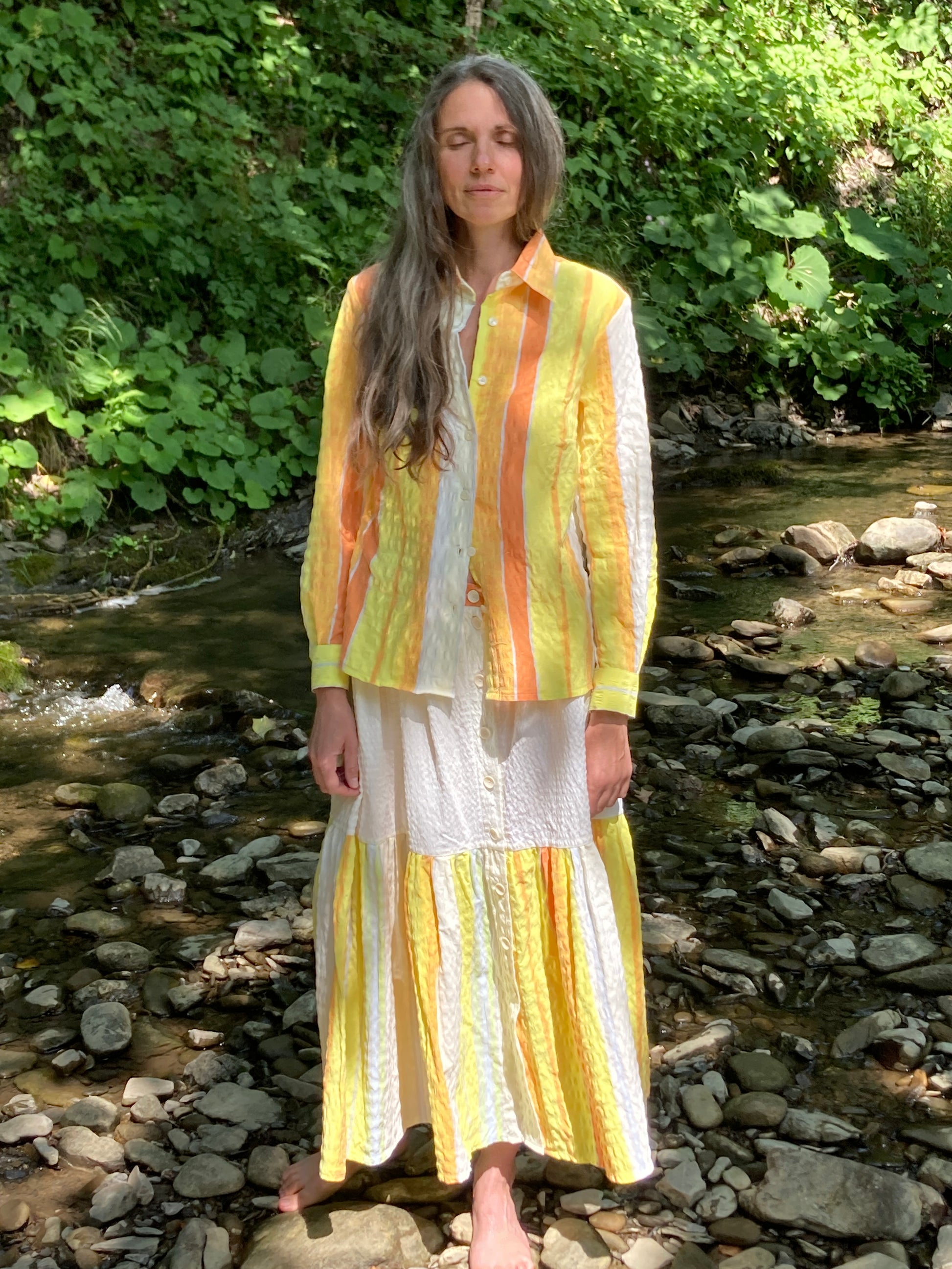 Długa spódnica z szeroką falbaną u dołu, wykonana z tkaniny vintage. Unikatowy wzór. W sklepie znajdziesz również koszule uzupełniające look!